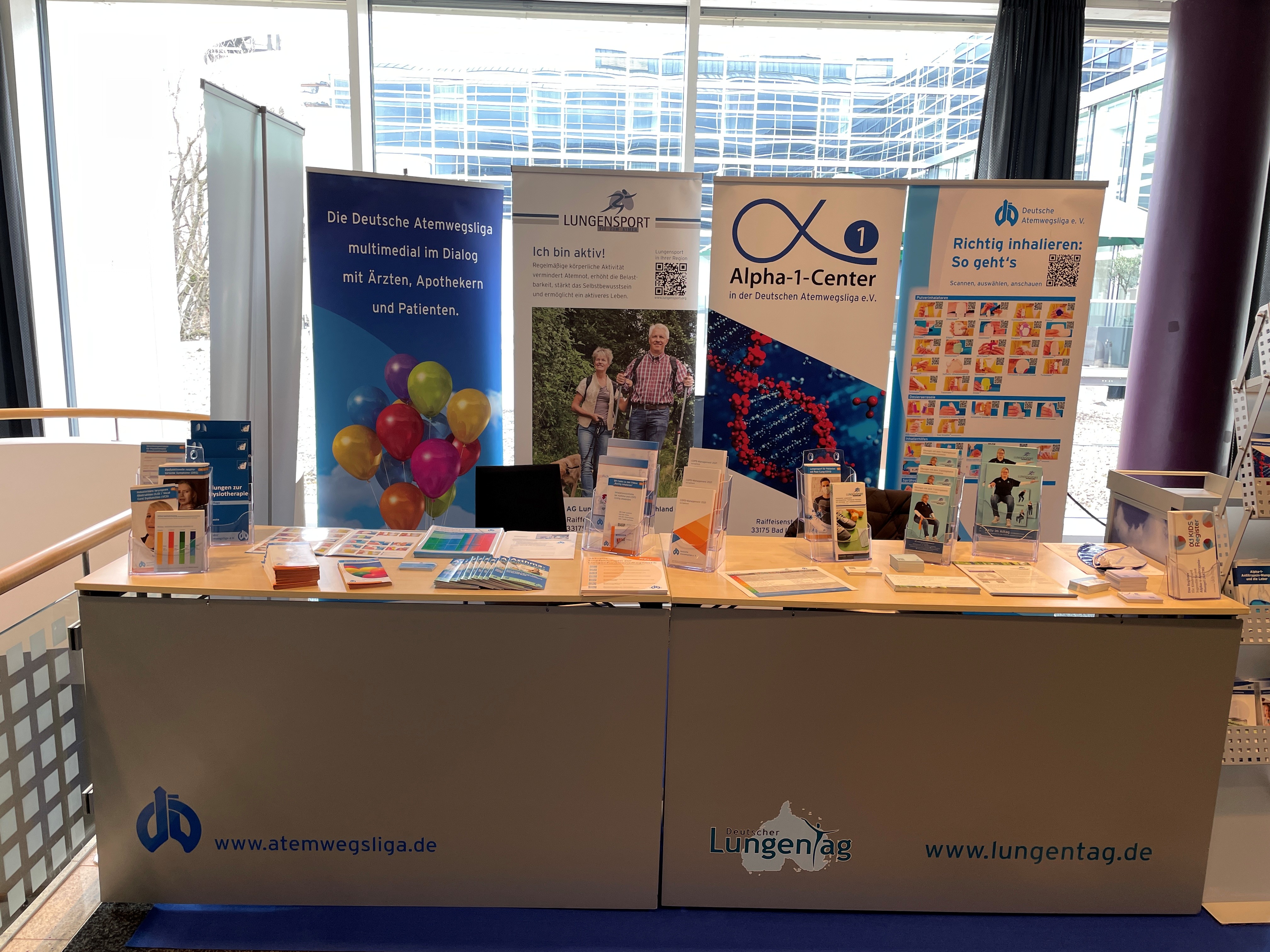 In der kommenden Woche beginnt der Pneumologie-Kongress der DGP in München. Die Deutsche Atemwegsliga e.V. wird gemeinsam mit den Alpha-1-Centern, dem Deutschen Lungentag sowie der Arbeitsgemeinschaft Lungensport mit einem Stand vertreten sein. Sie finden uns im: ICM Kongresszentrum München Foyer, 1. Obergeschoss Standnummer SHG 6 & 7 (neben der DGP) Wir freuen uns auf Ihren Besuch und den persönlichen Austausch in München. |